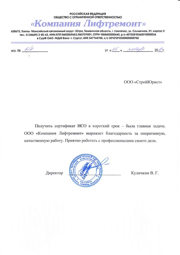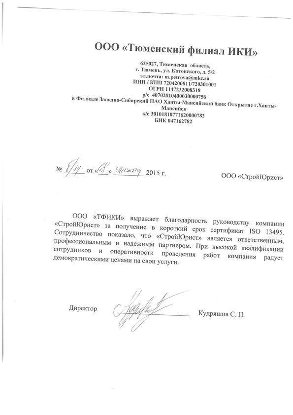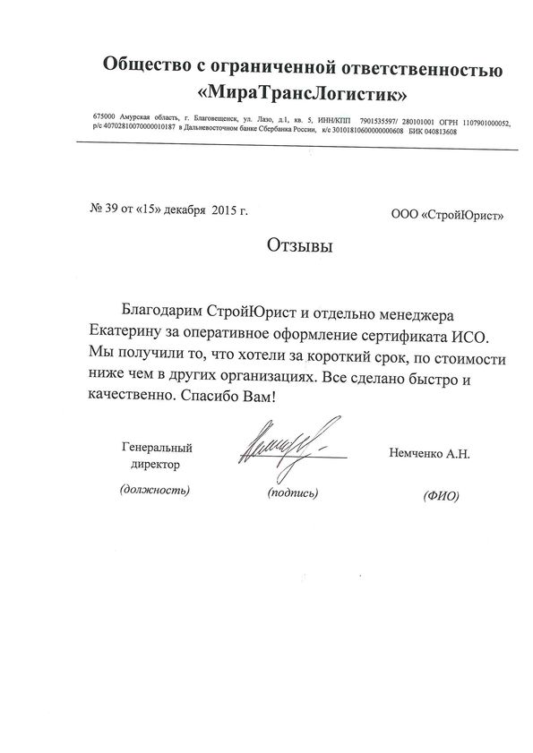 Отзывы клиентов "СтройЮрист" по ISO в Химках