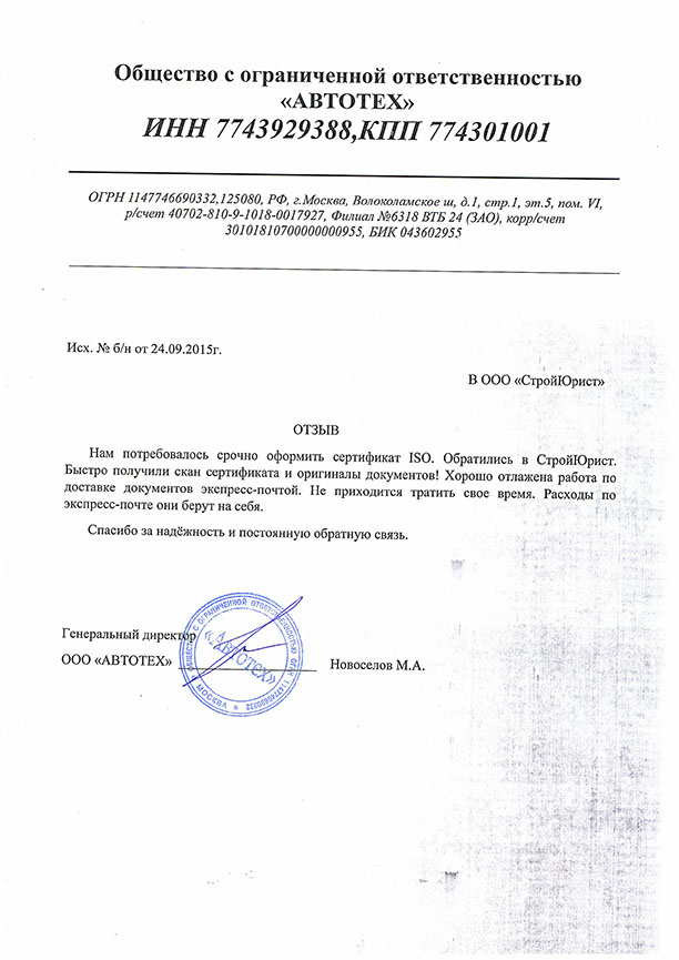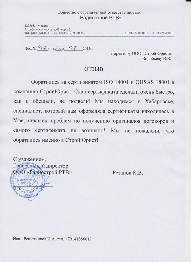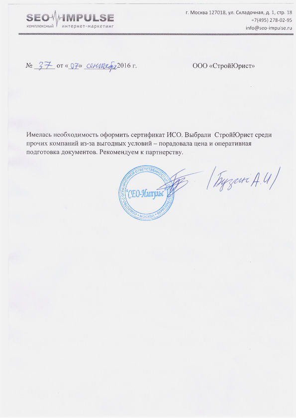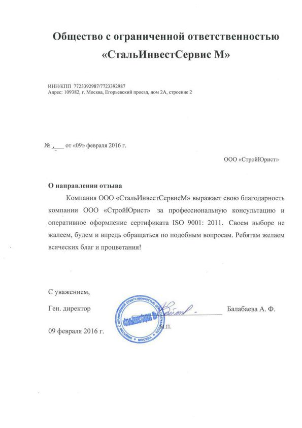 Отзывы клиентов "СтройЮрист" по ISO в Химках