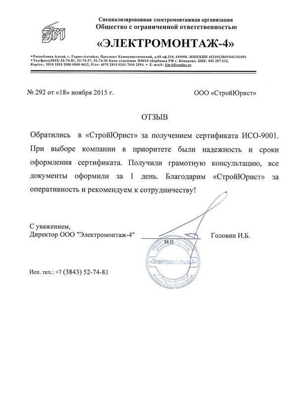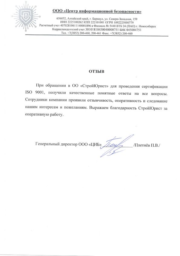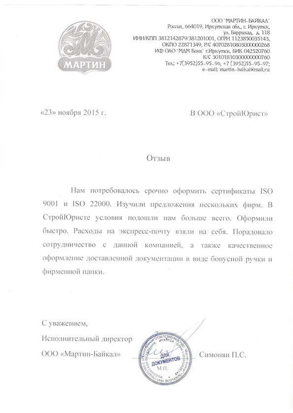 Отзывы клиентов "СтройЮрист" по ISO в Химках