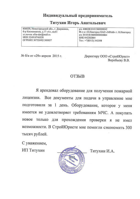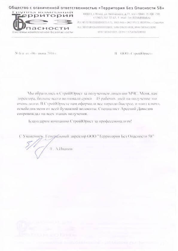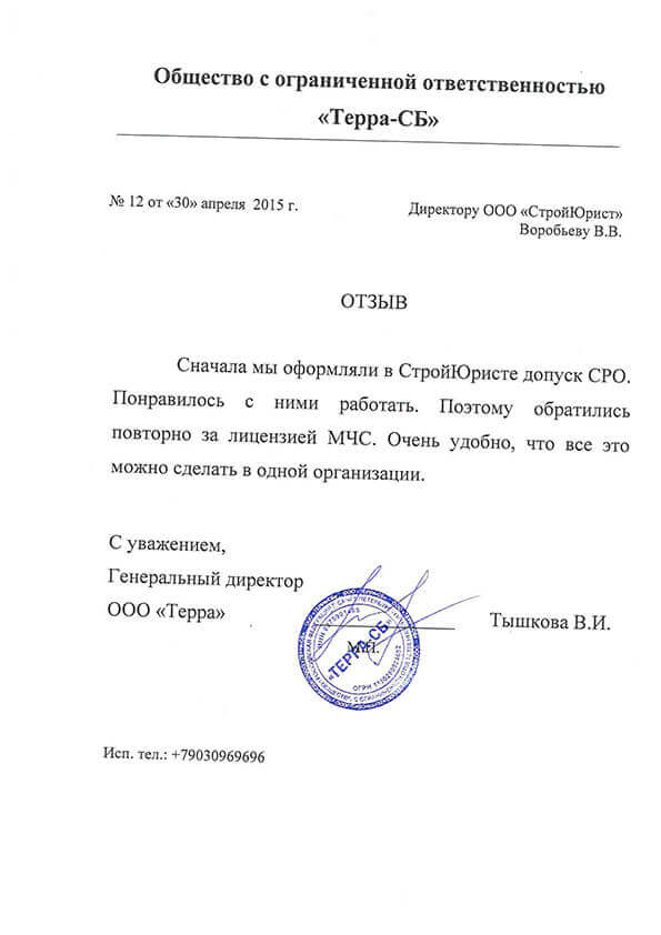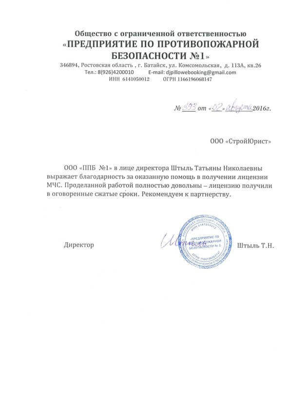 Отзывы клиентов "СтройЮрист" по лицензированию МЧС в Химках