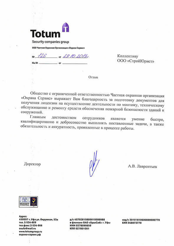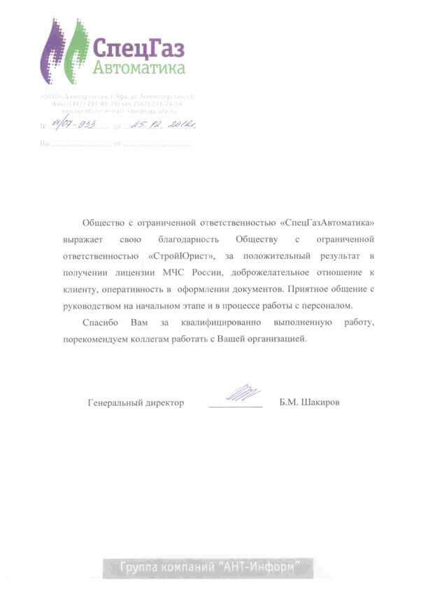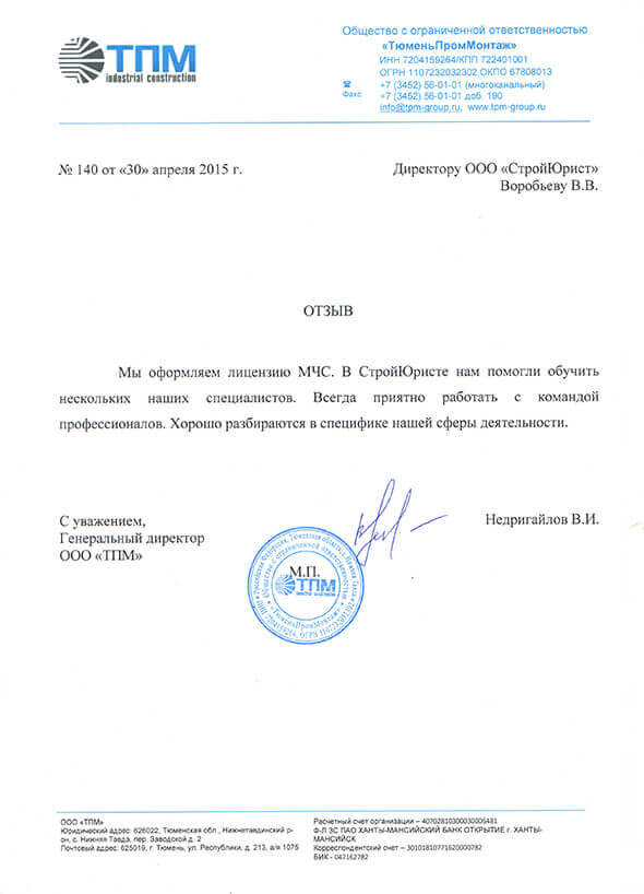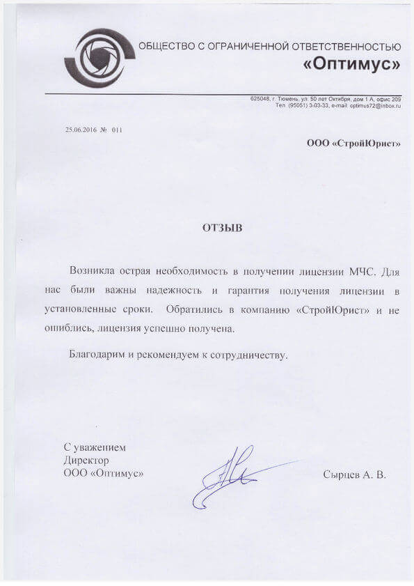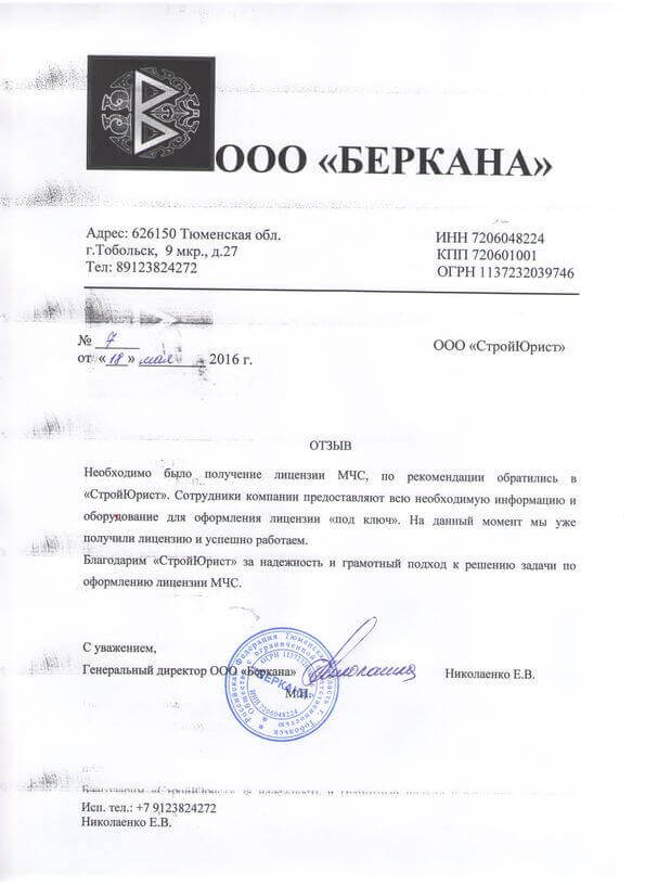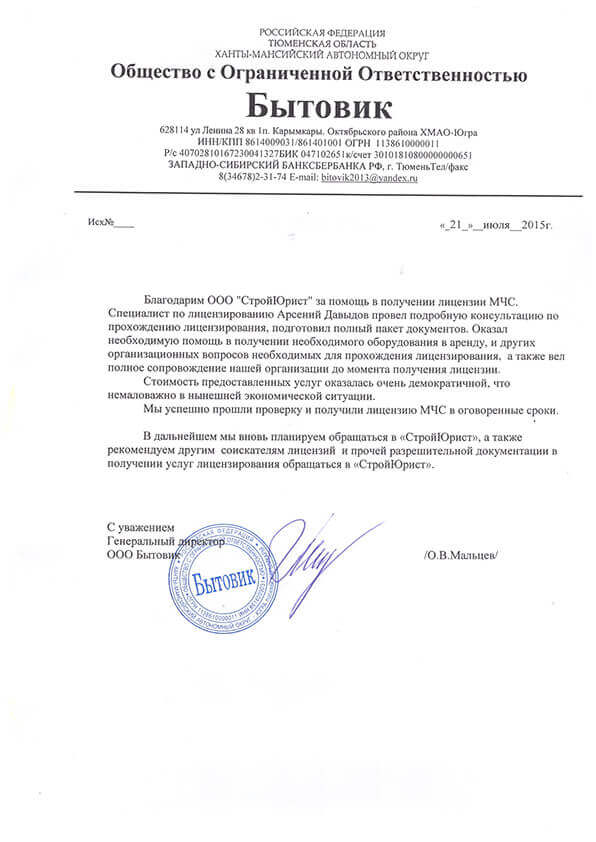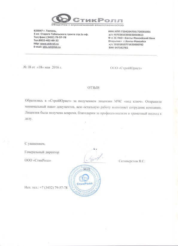 Отзывы клиентов "СтройЮрист" по лицензированию МЧС в Химках