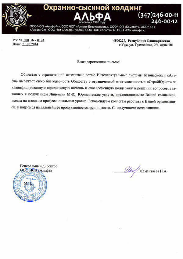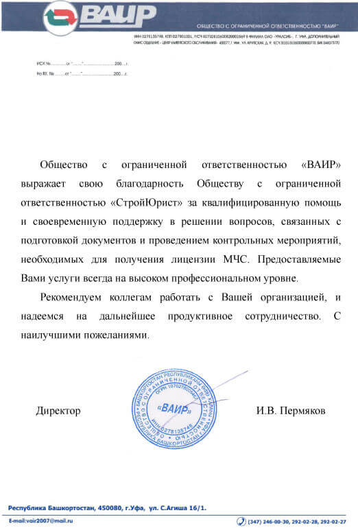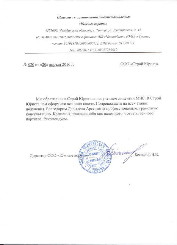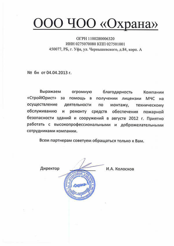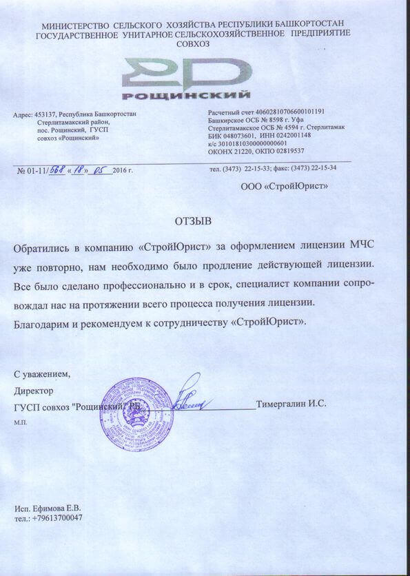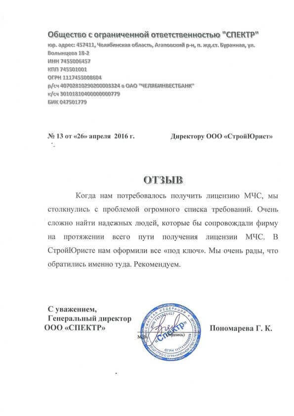 Отзывы клиентов "СтройЮрист" по лицензированию МЧС в Химках