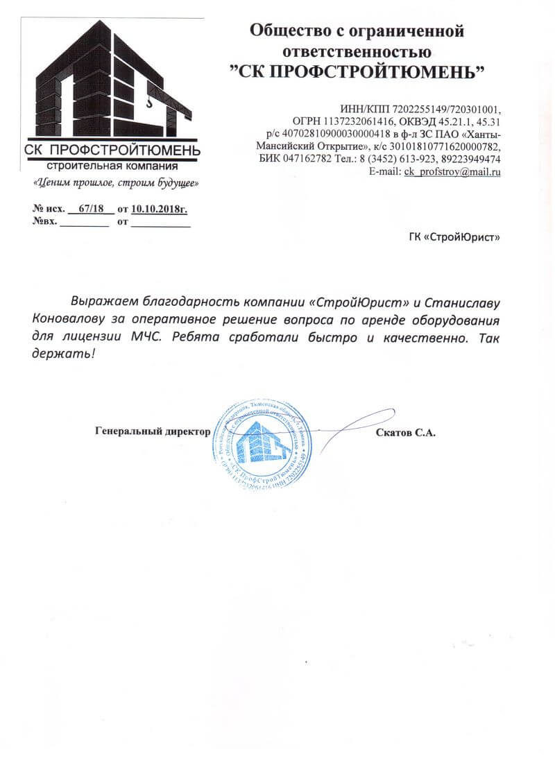 Отзывы клиентов "СтройЮрист" по лицензированию МЧС в Химках