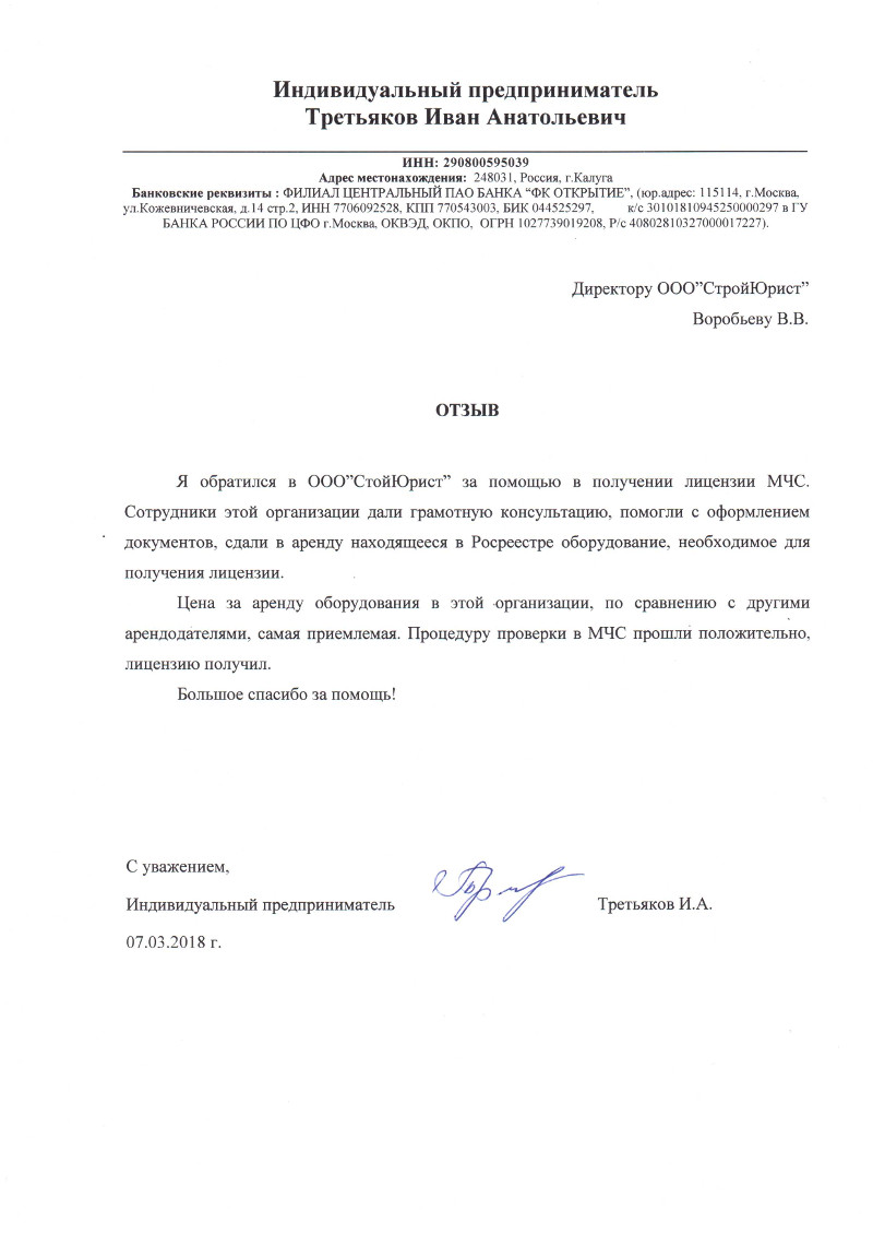 Отзывы клиентов "СтройЮрист" по лицензированию МЧС в Химках