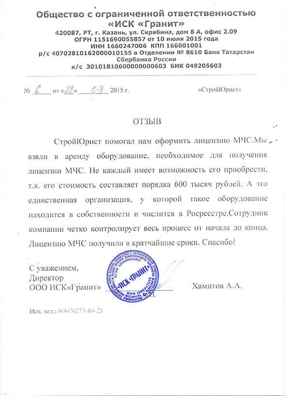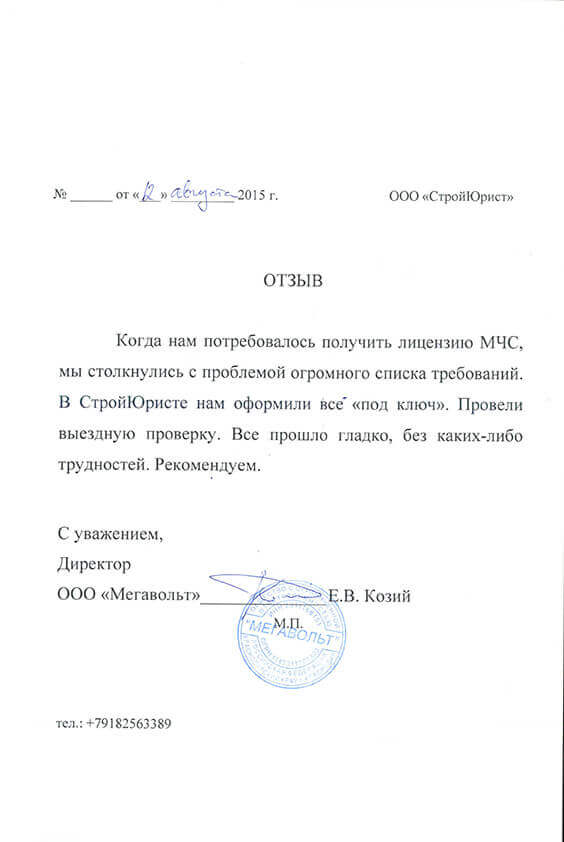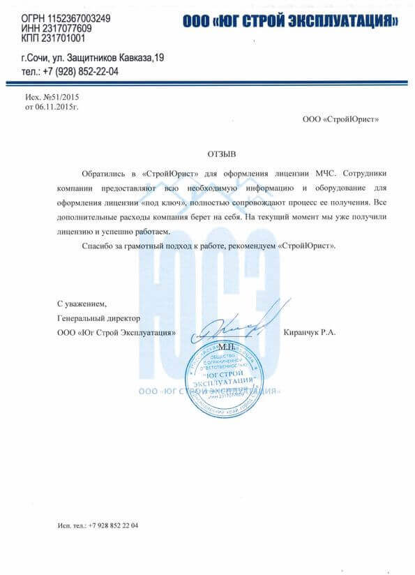 Отзывы клиентов "СтройЮрист" по лицензированию МЧС в Химках